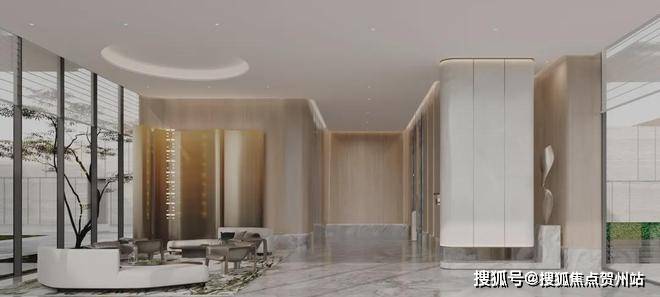第三重,玻璃无界转换层,北塔7.5米挑高入户大厅,南塔5.5米挑高大厅,通透犹如玻璃盒子的设计,像一个奢侈品展柜,让业主从城市到自然,一键切换度假模式。