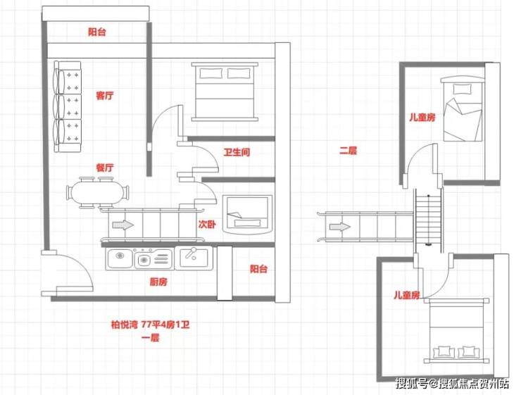 【77㎡4房1卫】一层4套端头位置东北,西北,东南西南,双面采光景观4面景观