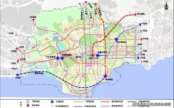 →中心枢纽:综合枢纽中心——福田站