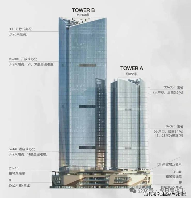 ▷整体业态:集商务写字楼、高端商业、空中会所,以及拥有70年产业高端住宅等多元业态于一体的金融岛尖地标综合体
