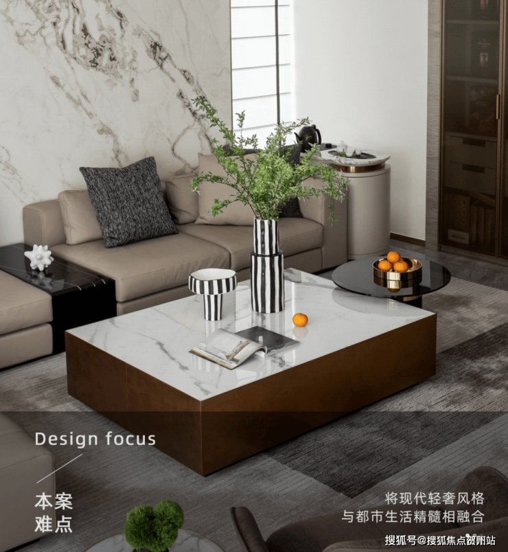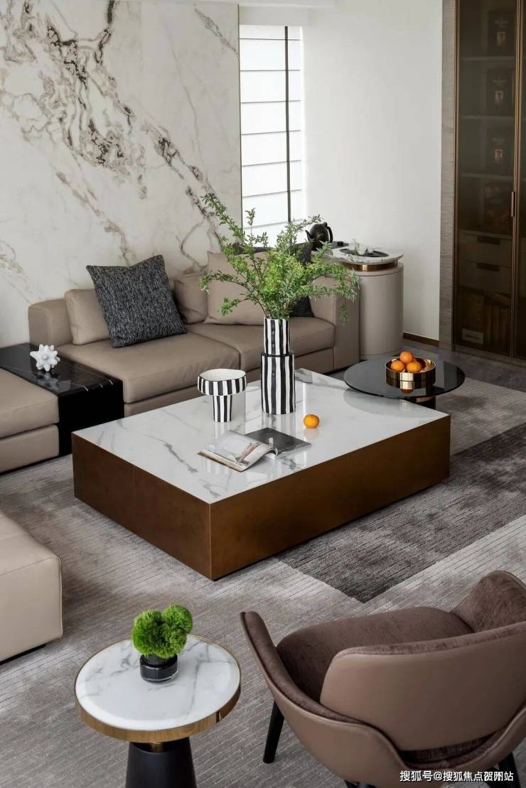 金属与大理石拼接而成的茶几,实现精致与实用的完美融合。金属光泽于光影间闪耀,宛如低调奢华的象征。
