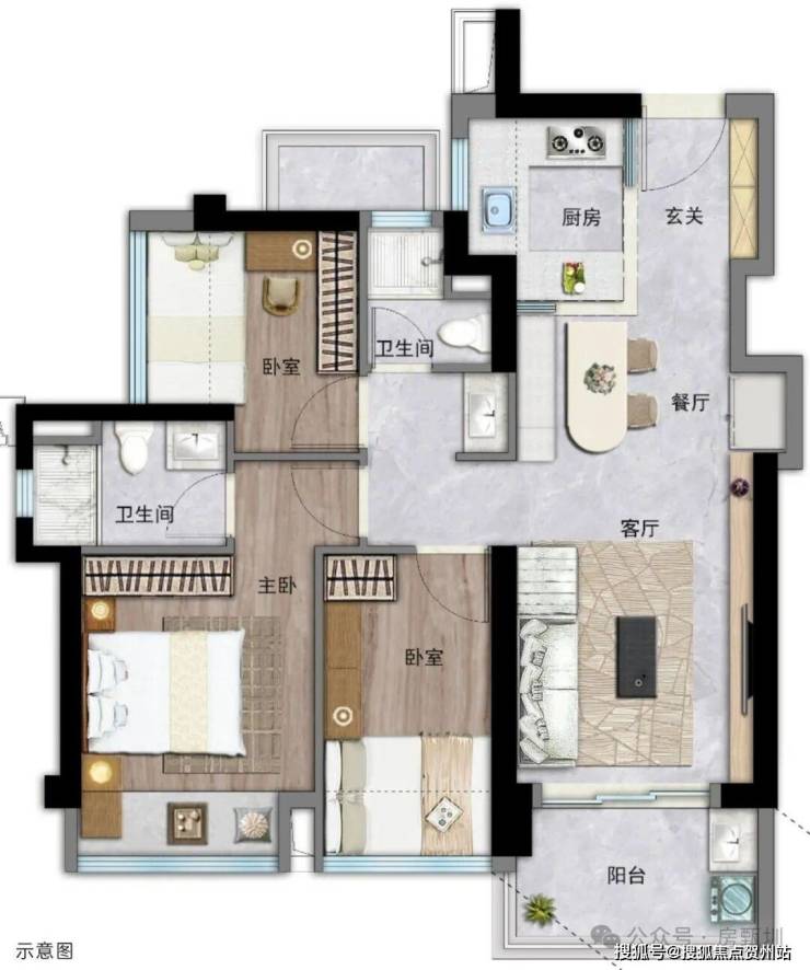 - 76㎡三房一卫:得房率89%,深圳西部稀缺小户型三房!三开间朝南,带设备平台,三段式分离卫生间,满足三口之家的居住需求,总价仅266万起。