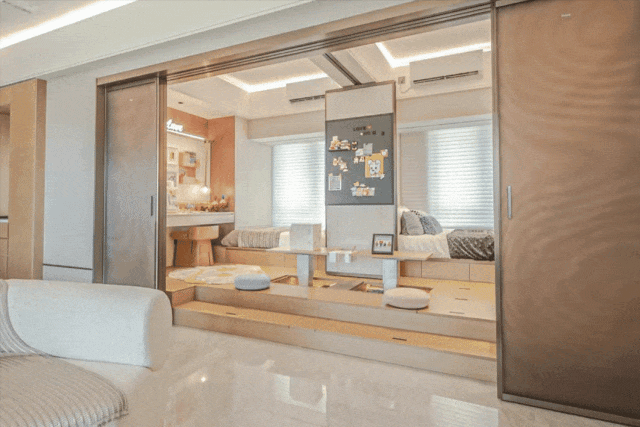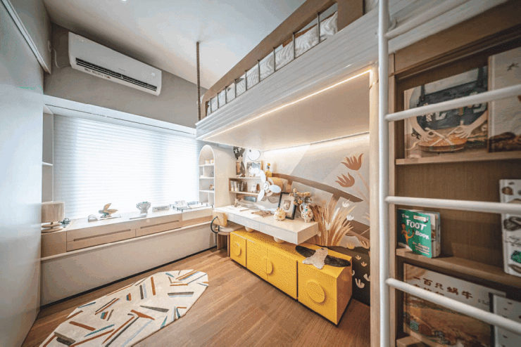 这里没有界限,他们可以并排看书、一起趴在地板上完成巨幅拼图,又能保证彼此不打扰的安稳睡眠。
