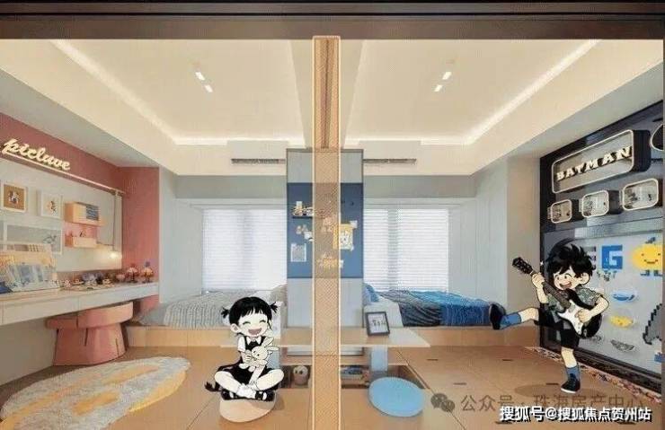 值得一提的是,两个次卧之间没有承重墙,“二孩”家庭可以将次卧连通,变成“双孩房”。