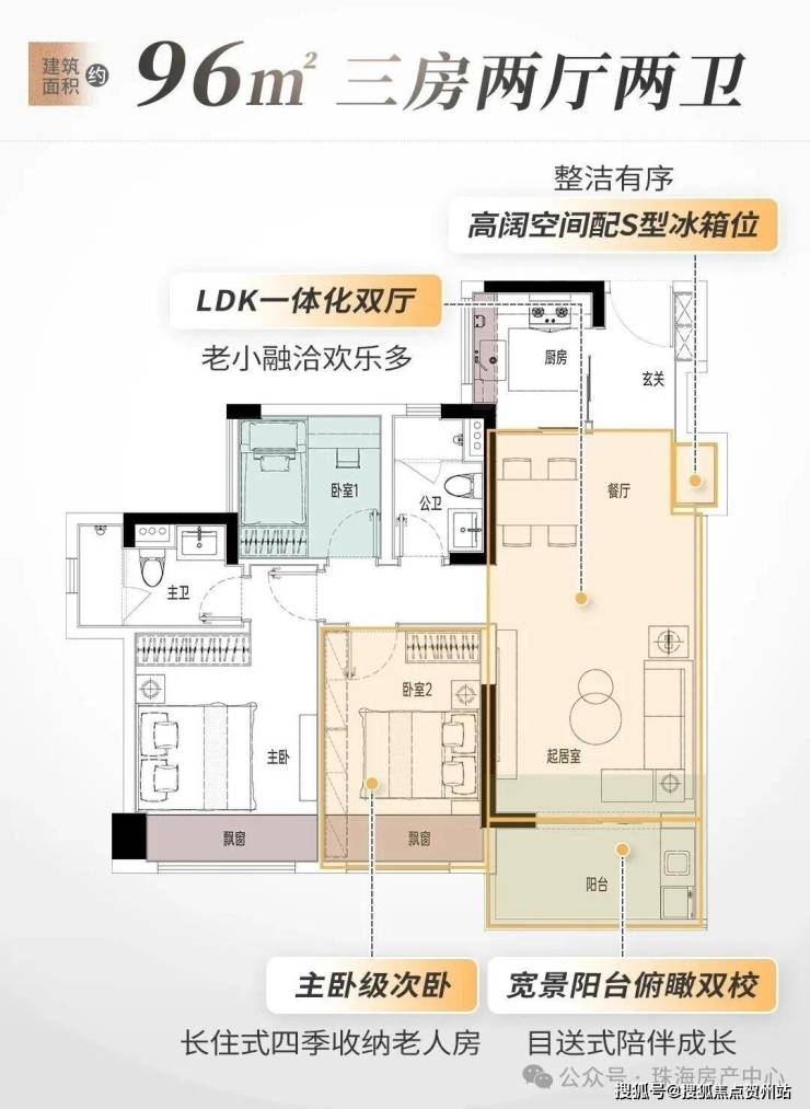 比如,建面约96㎡舒适三房,以精巧布局为温馨家庭生活量身打造。