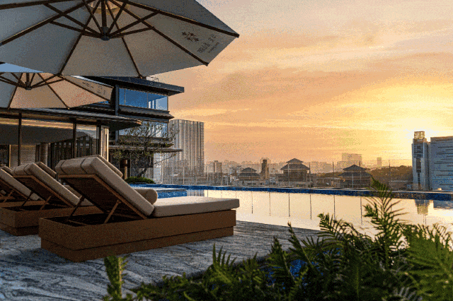 宝格丽绿与库班绿铺就的梦幻叠水,日咖夜酒的松弛与室外无边恒温泳池的惬意,让自然、艺术与生活无缝相融。