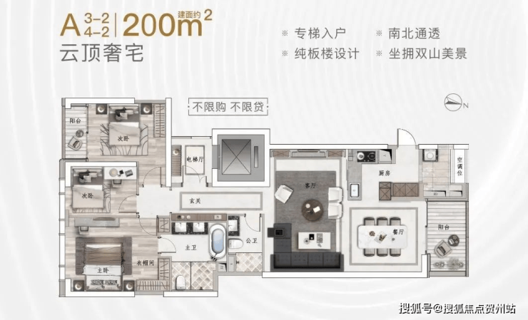 A座:建筑面积约160-220㎡2-3房(南北通透,专梯入户)