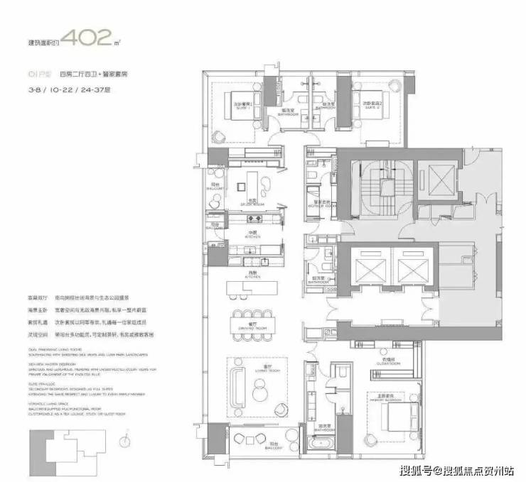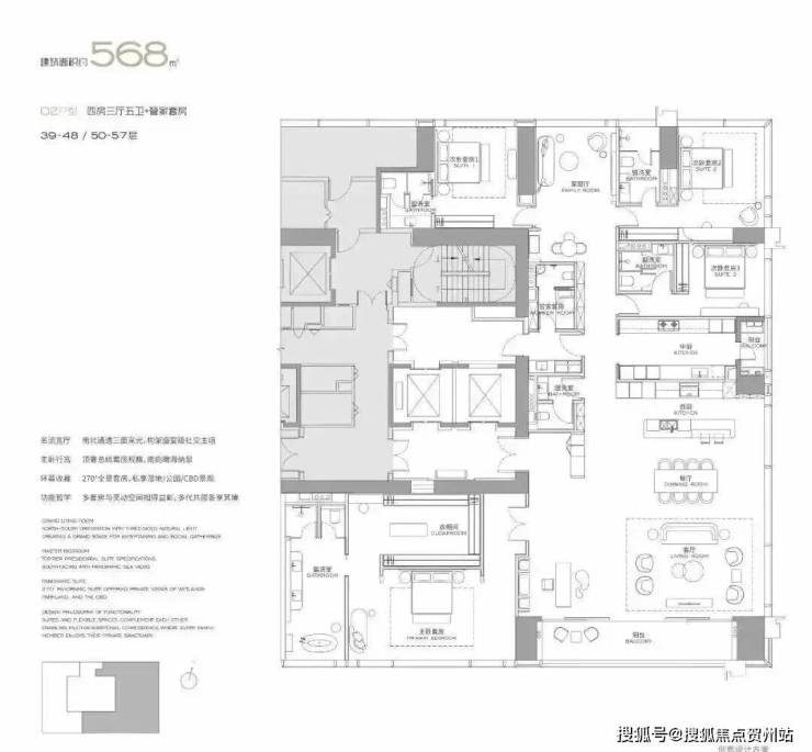 主力户型:303㎡、326㎡、404㎡、572㎡等大平层,最大户型达1000㎡