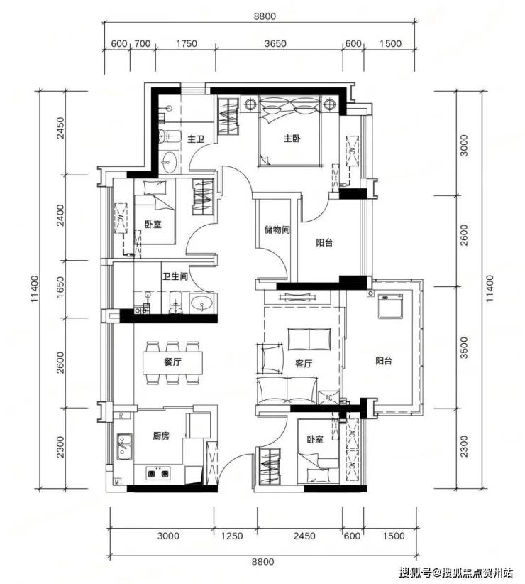 89㎡四房两厅两卫,同等面积多一间房,二孩家庭也能三代同堂。
