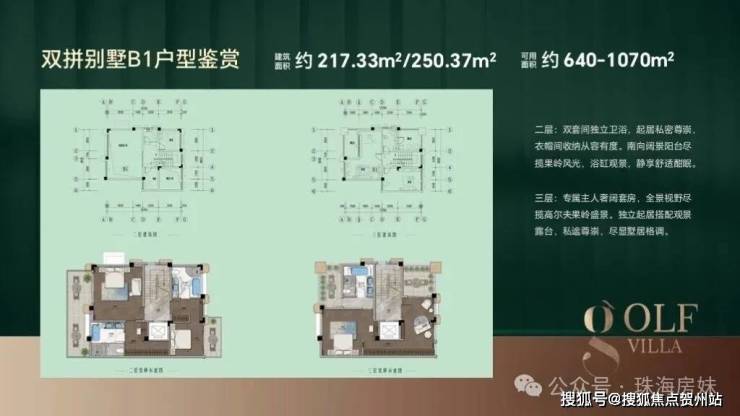 🔺双拼别墅B1户型:建筑面积217.44-250.35㎡,可用面积约640-1070㎡