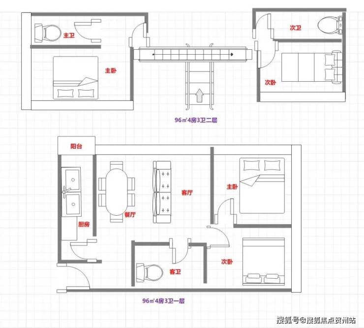 96㎡4房3卫