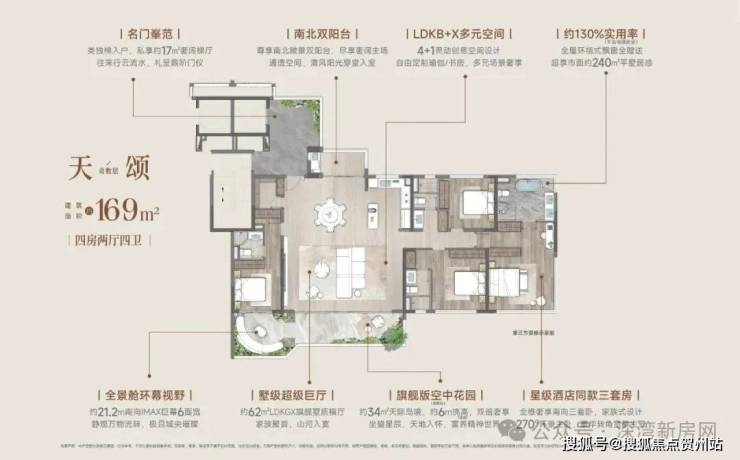 约33㎡LDKG无界横厅+约17.6米南向阔尺5面宽巨幕开间+约6米挑高空中花园+约26㎡奢适主卧套房+近120%实用率(不含电梯厅),奢享精质生活;
