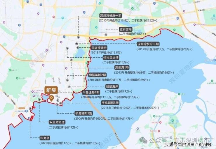 ▲深圳湾豪宅线示意图,挂牌均价为7月,来自贝壳找房