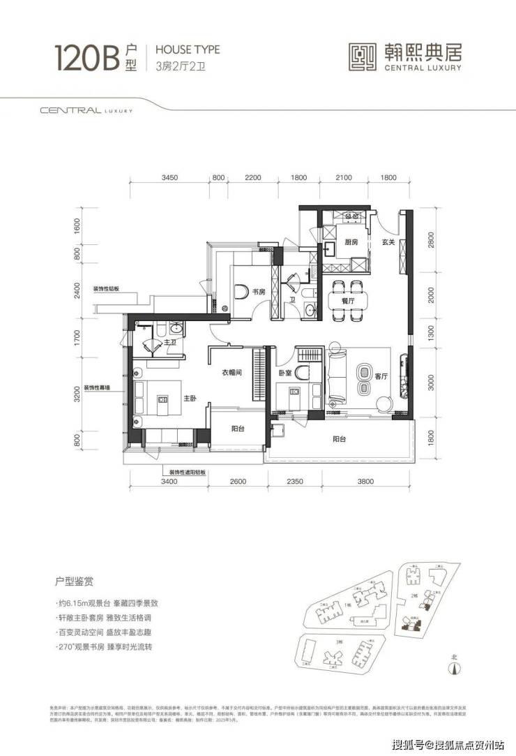 (2)120㎡3+1房2卫:主卧套房超30㎡,可灵活改造空间,适合改善型需求。