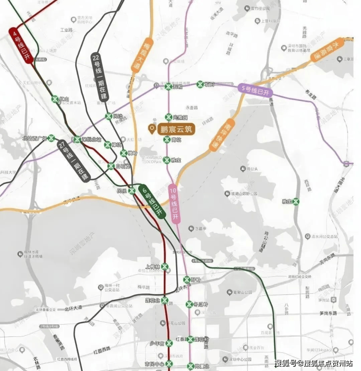 10号地铁线“南坑站”距离约500米,22号地铁线“横岭站”距离约700米,2站到福田冬瓜岭,4站到岗厦北,6站香蜜湖,7站车公庙。约2.5公里还有深圳最大北站枢纽,快速通达深圳各大区域。