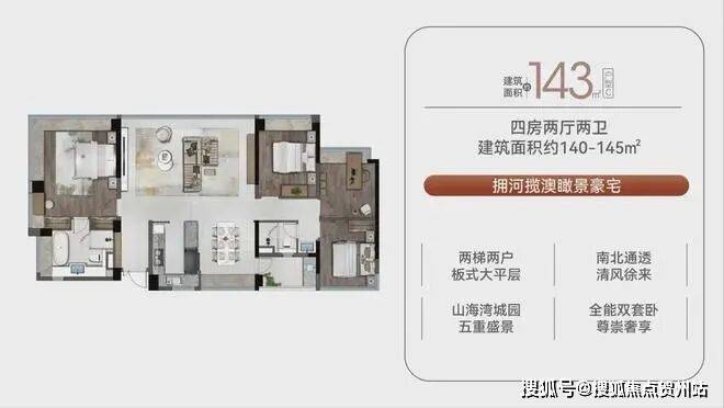 (2)143㎡四房:总价约715万元/套,单价约5.07万元/㎡;