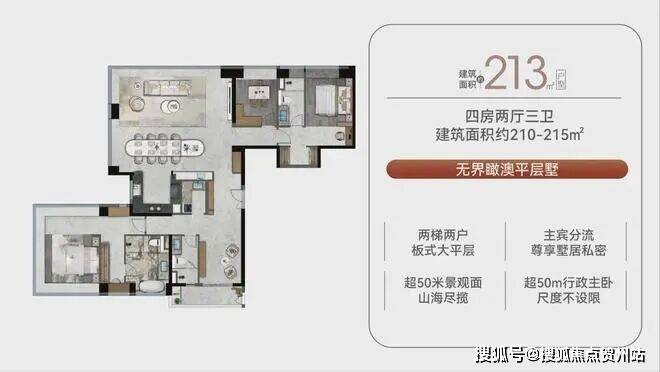 (3)213㎡楼王户型:单价约6.5万元/㎡。