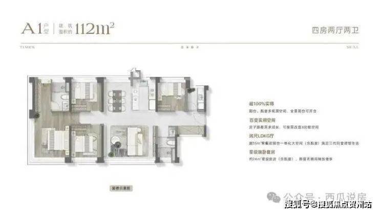 也正是在超高实得率的支持下,项目建面约112㎡舒适四房,尺度感和舒适度都是同类产品Plus版,将空间价值还给居者,轻松实现“舒适真四房”的改善梦想。
