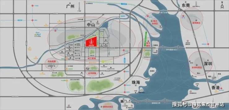 :处于岐江新城核心区域,是中山未来城市新中心,未来国际型服务中枢、创新型总部基地和生态型文化新区。位于中山站和中山北站两大轨道枢纽之间,临近广州地铁 18 号线延长线、广中珠澳高铁、深茂铁路、深大城际等重要轨道交通,交通便捷,可快速通达广州、深圳、珠海、香港、澳门等地。