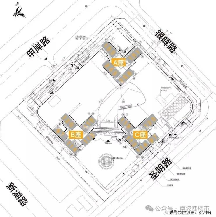 总建面约 10.56万㎡,商业建面约 1.15万㎡,住宅共有 三栋塔楼,建面约 4.86万㎡,三栋住宅 一层二层为商业,三层以上为住宅。