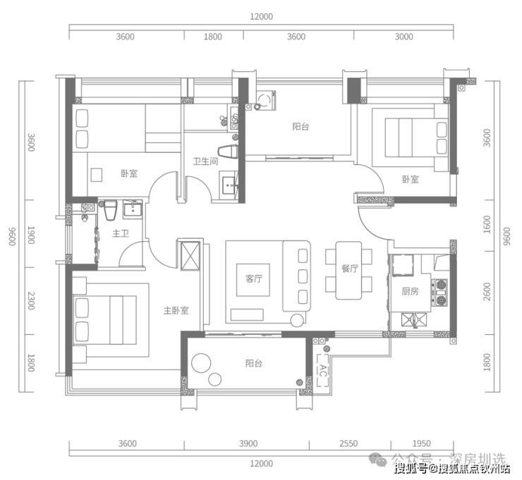 120㎡三房两厅两卫(南北通透),总价351万(2楼)起,单价2.95万起