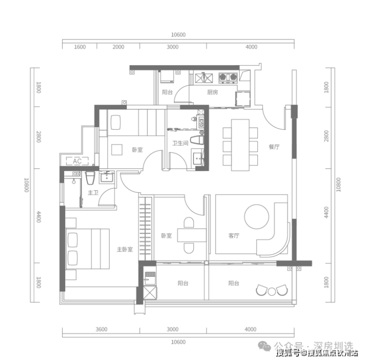 D户型建面约173㎡,4房2厅2卫