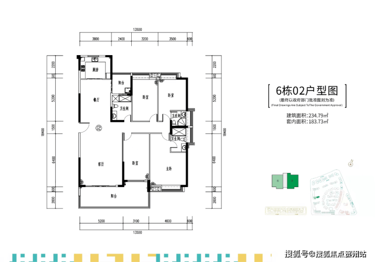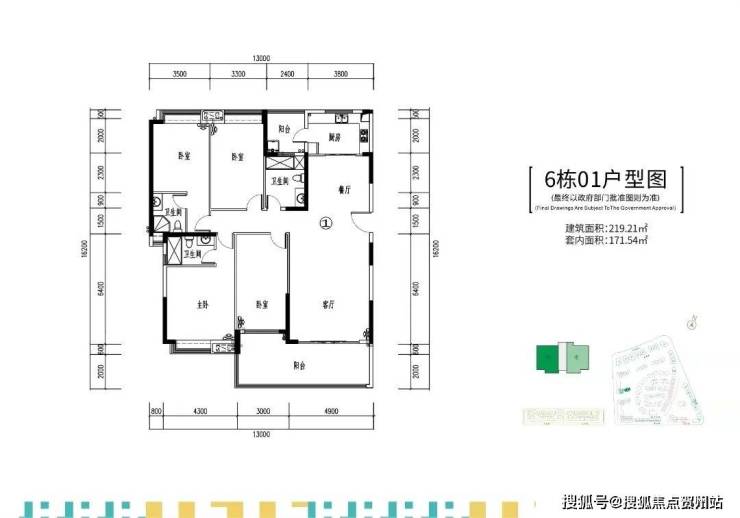 在售的6栋,两梯两户,建面约219-235㎡四房大平层户型。
