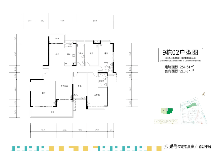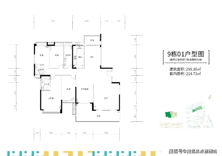 9栋,两梯两户,建面约255-259㎡五房大平层户型。