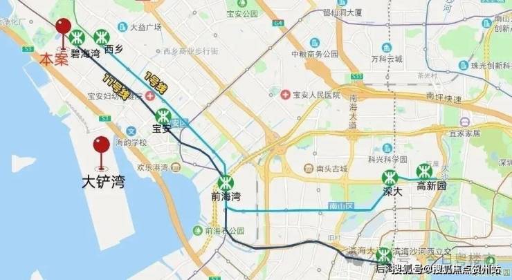 • 轨:11号线「碧海湾站」出站即达,距1号线「西乡站」直线距离约800米,1站宝中、2站前海湾、4站后海、6站车公庙,高效直达各中心区;