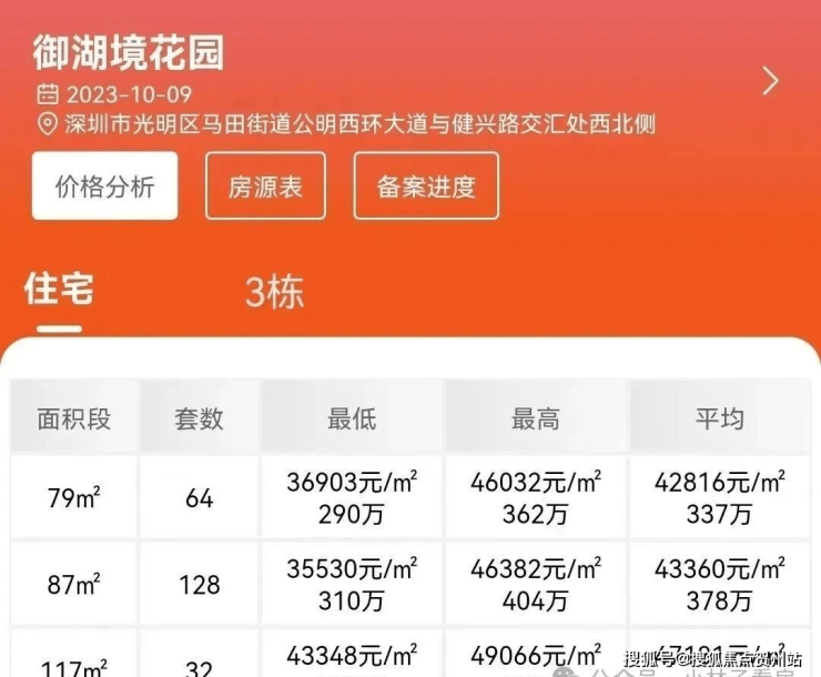 2023年10月9号加推3栋共224套,面积79平-117平,备案均价43843元,备案总价299平-574万。剩余0套,备案了224套,去化率100%。