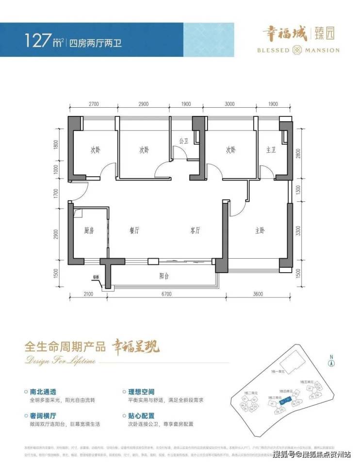 (4)127㎡:4房2卫横厅,6.7米双厅联动阳台,次卧连接公卫。