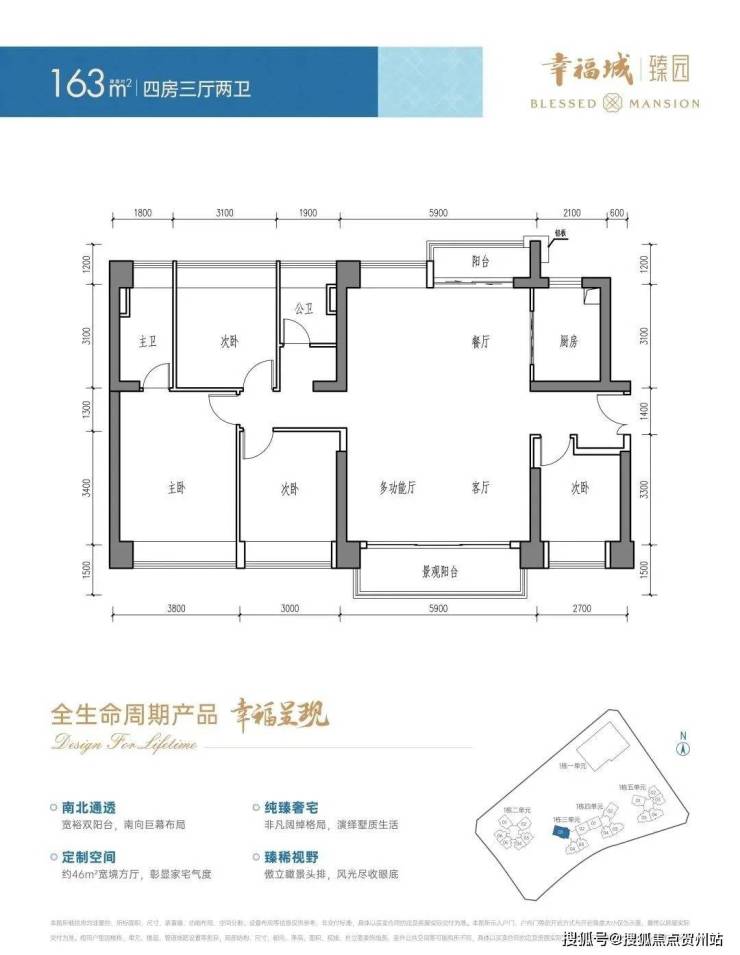 (5)142-163㎡:4房3厅方厅设计,南北对流双阳台,163㎡户型含空中平墅概念。