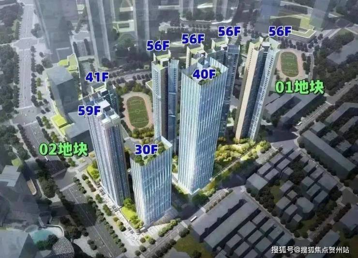 另一个01-02地块,总占地约1.23万㎡,总建筑面积约15.08万㎡,计容建筑面积约10.85万㎡,容积率为8.31,绿化率同样为40.01%,该地块由2栋41至59层高的住宅楼组成,其中3栋为41层的住宅楼,4栋为59层的公共租赁住房。此外,还有5栋是30层的办公楼,以及2栋是一所9班制幼儿园。