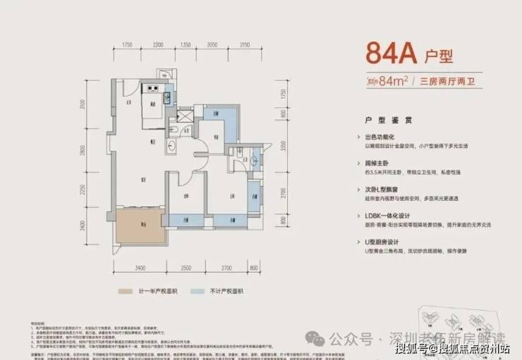 竖厅设计动静分区,约3.5米开间主卧,带独立卫生间,书房L型飘窗,多面采光更通透,U型厨房布局,流线顺畅。