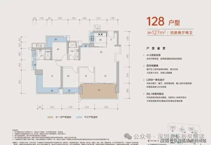 四开间南向采光,约6米开间阳台,客厅与次卧可拓展,双L型飘窗,多面采光通透舒适,开阔视野 、无遮挡、看公园景观