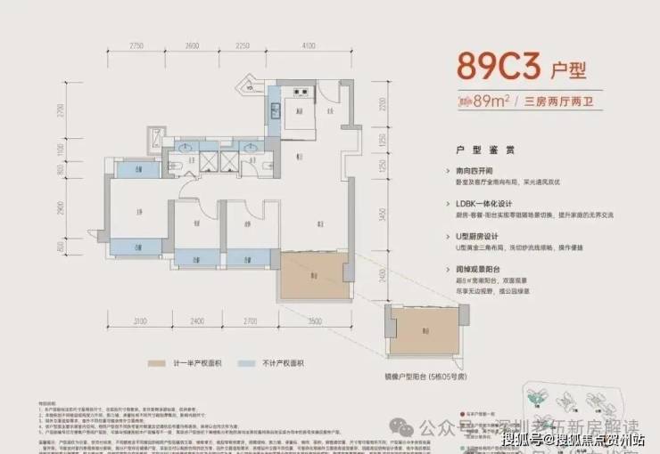 89C3户型 四开间朝南3房2卫
