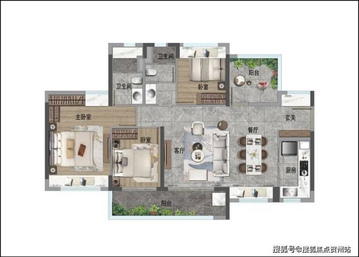 • 89㎡户型,在79户型基础上做进一步升级,