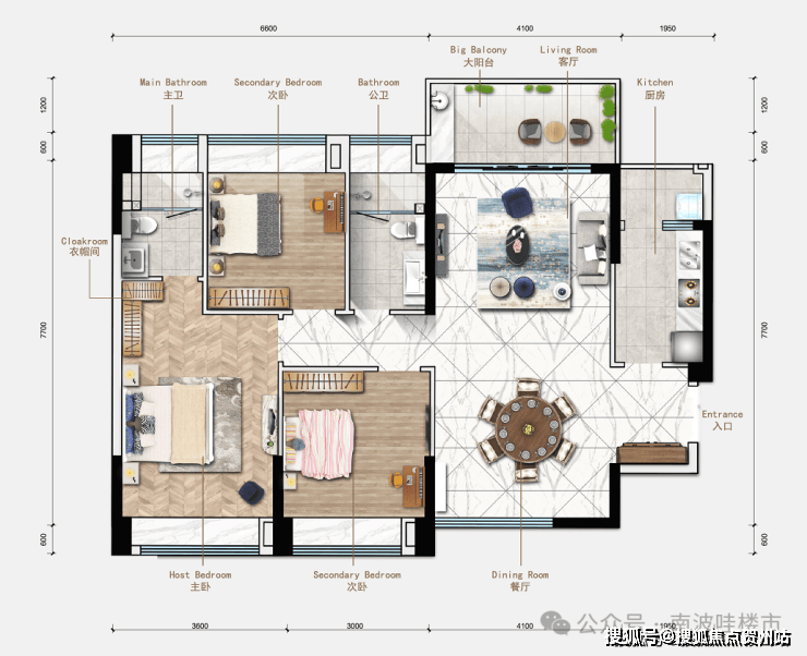 4.1米超大正南阳台,南看五桂山山脉,北向看小区主景会所,格局方正实用,卧室带飘窗,空间利用率高;