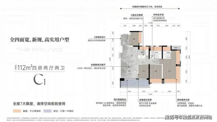 而C1建面约112㎡的4房户型则采用了经典竖厅LDKB一体化布局,四开间朝南看小区园林景观,阳台和飘窗更大,采光面更广,主卧更是做到了三个采光面,同样是减少了室内承重墙的设计,使全屋的功能性大大增加,既可减少房间做阔绰的舒居设计,亦可做多房间满足多家庭成员居住需求。