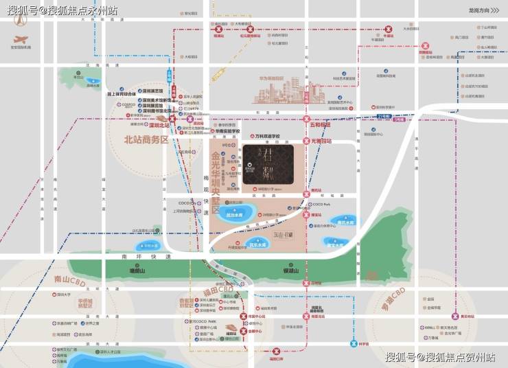 金光华龙岸君粼,由金光华集团开发,位于龙华区民治街道雅园与华南路交汇处,项目西侧是华南国际物流中心,8号仓奥特莱斯,南侧看民治水库,北侧是万科四季花城,东侧是10号地铁线“光雅园站”距离约230米,10/21号地铁线“南坑站”距离约300米。(深圳金光华龙岸君粼售楼处电话:400-079-2015)