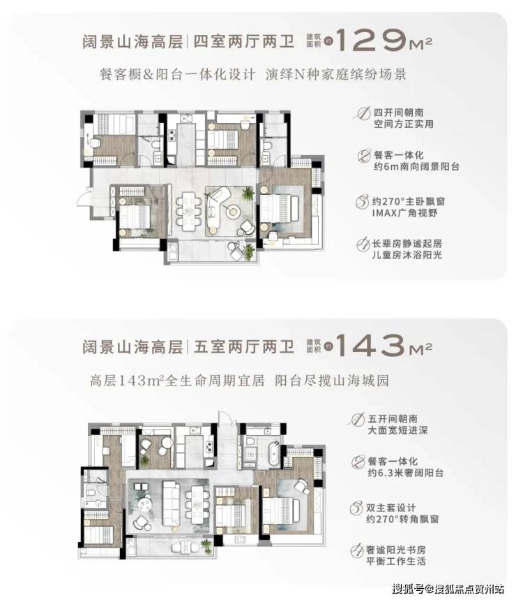 低密洋房:建面约143-169㎡五房,一梯一户设计,三开间朝南,主卧配备270°转角飘窗及步入式衣帽间,得房率超85%。
