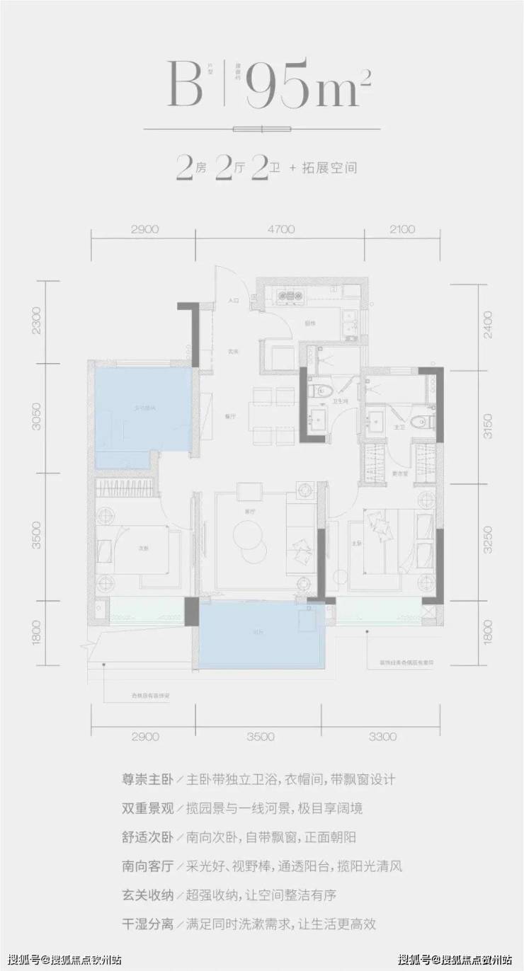 B户型——建面约95㎡2房2厅2卫+拓展空间