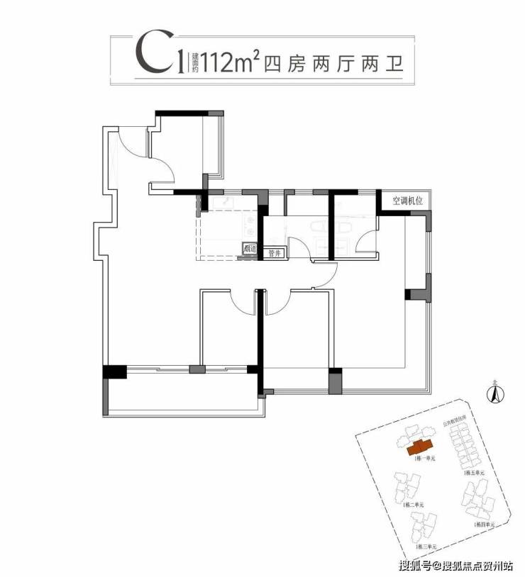三:建面约112平方C1户型四房两厅两卫