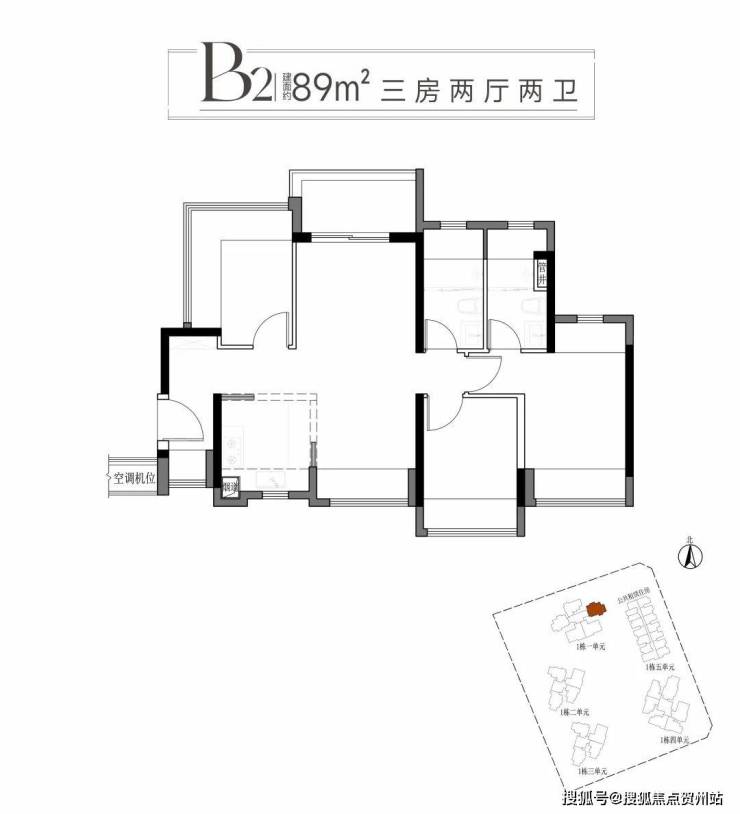 二:建面约89平方B1B2户型三房两厅两卫
