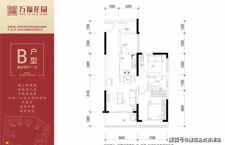 78㎡ 2房2厅1卫,B户型(1/2栋02.05)