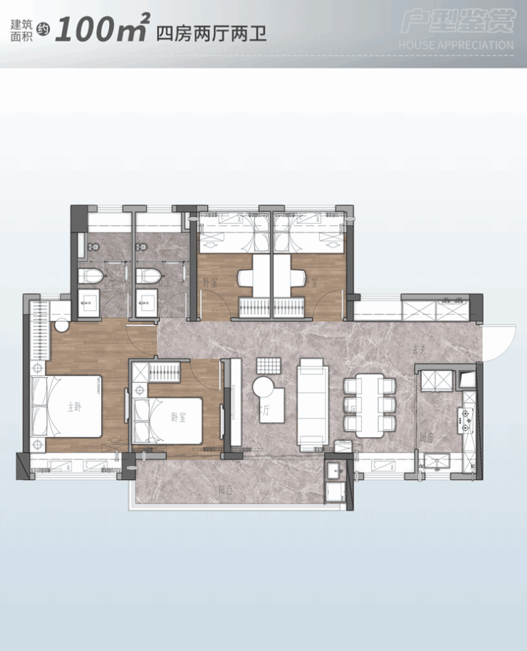 关键是,市面建面100㎡以三房为主,这个项目却施展出四房两卫的绝妙设计,多一间房,多的不止是空间,更是生活的从容与享受。