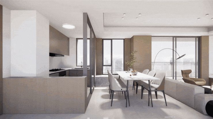 这还是一个百变户型,打通客厅和次卧,能将客厅从约3.2米宽瞬间拓展到约6.2米宽,空间尺度感拉满。