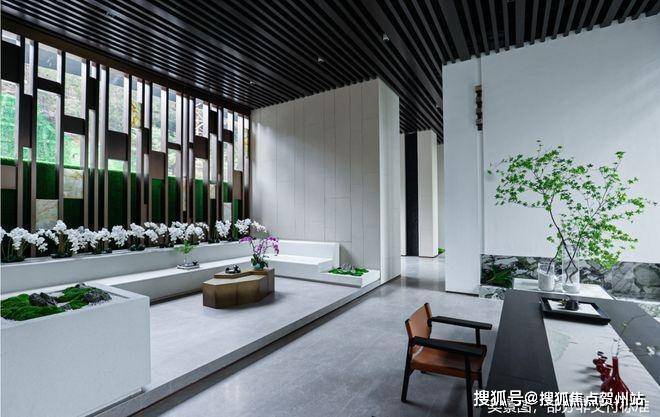 将新中式建筑精髓与当代格调完美融汇于大门之中;极致挑高尺度,尽显恢弘气度。
