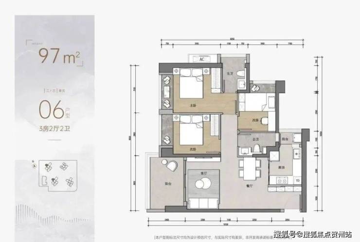 116平在97平原先结构基础上又多加了一个房间,而且客厅开间也是做到了 3.8m 更为阔绰。