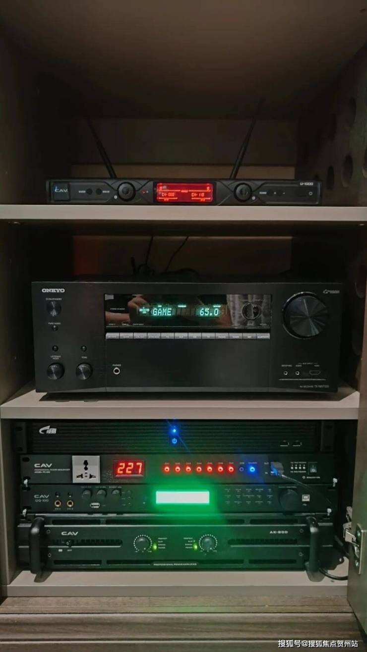 在影音室,杜比全景声系统(德国ETON与意大利B&C联合打造)与CAV KTV娱乐系统深度融合,结合快思聪中控,实现: